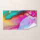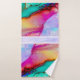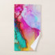 Serviette de bain avec un design abstrait artistique soigné. Peinture aquarelle avec les couleurs mélangeant et mélangeant créant un motif marbré fluide.