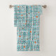 Motif moderne et design inspiré par des motifs rétro modernes du milieu du siècle avec des formes de starburst atomique sur un panier blanc tissé dans les tons orange, gris, turquoise, noir et blanc