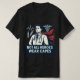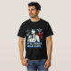 Le design présente un graphisme audacieux et moderne d'un stéthoscope formant une forme cardiaque au centre de la chemise, symbolisant le soin et la compassion. Au-dessus du graphique se trouve le texte "Saving Lives Daily" dans une police sans-serif propre, tandis qu'en dessous, en cursive, il dit "Fière d'être médecin". Des icônes subtiles comme une croix médicale, une seringue et une ligne de battement de coeur accentuent les angles pour plus de détails. Le design utilise des couleurs apaisantes comme bleu marine, turquoise et blanc pour un look professionnel et propre
