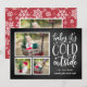 Un carte photo de vacances rustique et fantaisiste présente trois photos dans une mise en page collage, avec "bébé il fait froid à l'extérieur" en typographie blanche et lettrée à la main sur un arrière - plan de tableau noir. Personnalisez-vous avec vos noms en-dessous, et ajoutez une photo supplémentaire au dos sur un arrière - plan à motifs de flocon rouge et blanc.