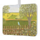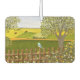 Un décorateur d'air avec une belle image d'une scène naturelle : Un oiseau assis sur une clôture patinée, des fleurs sauvages poussant autour de la clôture, un fermier sur un tracteur, travaillant sa terre, des arbres avec des feuilles, et des terres agricoles de différentes couleurs. L'arrière - plan, l'image et le texte peuvent être customisés. Oeuvre originale de W.B.