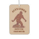 Si votre voiture sent comme un Skunk Ape, vous pourriez avoir besoin de ce design Bigfoot peint à l'air freshener. Deux modèles de texte, dont un pour un nom personnalisé, peuvent tous deux être personnalisés pour créer le parfait rafraîchissement de voiture squatchy.