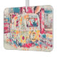 Bohème hippie coloré jaune, bleu, rouge, blanc de la voiture freshener. Voyage sur la route vers la liberté du bonheur phrase. Travel Trailer vintage des rideaux à fleurs des années 60 sur la fenêtre arrière. Branché, antique, rétro, cool, chic, super, photo art. Unique design de camping. Customisez le texte à l'arrière de la remorque si vous le souhaitez. Copyright de l'image Marg Seregelyi Photography.