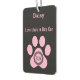 This elegant paw print car freshener adds warmth and emotion to every drive. Featuring the name "Daisy" and the touching phrase "Love Lives In This Car," it transforms your car interior into a reflection of devotion and joy. The soft blush tones against a charcoal background create a modern and heartfelt look. Perfect for dog lovers who carry their love wherever they go—add it to your car and make every ride feel more personal. Click the (optional) personalize button to change the text and image.