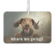 "Où allons-nous ?" texte sur une photo de chien mignonne (peut être changé pour votre chien) sur un humoriste amusant. Un cadeau abordable pour la famille, les amis ou de créer pour vous-même, ils sont double face et disponibles sous différentes formes et plusieurs extraordinaires de longue durée, odeurs éliminant.