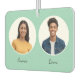 Améliorez le style et l’odeur de votre voiture grâce à ce nettoyant à air réversible et personnalisé. Conçu pour les conducteurs et leurs partenaires, cet accessoire cool présente vos propres photos à l'arrière et à l'avant, dans des "cadres" ronds avec vos noms élégamment affichés en dessous. Si vous vous tournez de l'autre côté, les conducteurs ont changé de place, vous pouvez donc simplement retourner le désodorisant pour faire correspondre le conducteur de la journée. Un côté est la pêche, l'autre vert clair. Parfait pour ajouter une touche individuelle à votre voyage tout en le gardant frais et élégant.