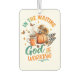 Design paisible et coloré avec une scène automne/automne avec un citrouille, tasse de café, papillons et fleurs automne. Le texte inspirant et coloré dit : "Dans l'attente Dieu fonctionne". Ce design est disponible sur une grande variété de produits.