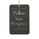 Display this inspirational phrase "Follow Your Compass" air freshener in your car. Black background with white lettering. Great gift for yourself, friend or loved one.