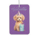 Celebrate a special day with this adorable poodle and birthday cake air freshener. Featuring a charming watercolor illustration of a fluffy poodle wearing a party hat, this design is perfect for any dog lover's birthday celebration. The vibrant purple background adds a festive touch, while the sweet cake with lit candles brings the birthday spirit to life. This unique air freshener will bring a smile to anyone's face and a pleasant scent to their car or home.