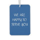 Le décorateur d'air freshener présente une illustration originale d'une tasse de café en diner grec bleu, avec NOUS SOMMES HEUREUX DE VOUS SERVIR dans une police amusante. Ne vois-tu pas ce que tu cherches ? Vous avez besoin d'aide pour la personnalisation ? Contactez Rebecca pour avoir quelque chose conçu pour vous !