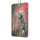 Créature alien métallique verte géante envahissant une ville métropolitaine. Wombo Dream AI et collaboration d'artistes.