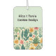 Faites la promotion de votre entreprise à mesure que vous sortez et que vous parcourez, avec votre propre nettoyant d'air de voiture personnalisé. Ajoutez votre nom d'entreprise sur le front vert clair, au-dessus de l'illustration des plantes de jardin et des fleurs. L'arrière de l'air freshener est vert avec votre nom d'entreprise comme avant, avec un code à barres QR pour vous de customiser avec votre URL de site Web. Les passants qui voient votre désodorisant dans votre voiture garée ou votre fourgonnette pourront scanner le code pour en savoir plus. Une façon simple, moderne et portable de promouvoir votre entreprise, votre organisation ou votre cause.