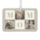 Give Mom a gift she'll cherish. This photo collage car air freshener features three of her favorite square family photos, along with the chunky gray letters "M-O-M" in alternating white squares on a gray background. An ideal gift for Mother's Day, Mom's birthday or other special occasions.