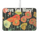 Parfum pour voiture pour femme avec nom et décoration de coquelicots orange et noirs. Un design de coussin magnifique. Conçu à partir de mes peintures aquarelles originales, que j'ai peintes dans mon propre jardin fleuri.