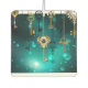 Or, clés antiques avec engrenages et cadrans accrochés sur chaînes dorées sur arrière - plan vert lumineux.