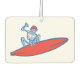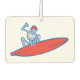 Surf ! Skeleton surfer voiture air freshener présente une beanie portant squelette attrapant une vague sur sa planche de surf rouge. Fait un grand cadeau pour les surfeurs, snowboarders et autres sports extrêmes.
