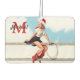 Sexy Hot Cowgirl Pin up Girl sur une clôture avec le Père Noël Casquette. Illustration rétro vintage. Vous pouvez customiser ce beau rafraîchissant de Noël avec votre propre nom et initiales/monogramme.