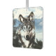Le loup, ou loup de bois, est surimposé sur un arrière - plan sauvage avec ciel et montagnes enneigées dans l'arrière - plan montrant à travers les zones du loup les amoureux de la faune, accrochés à l'air freshener. La sélection de l'odeur peut être modifiée
