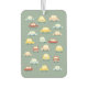 Motif de voiture rétro amusant sur un arrière - plan vert sage. Art original de Nic Squirrell.