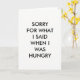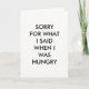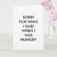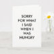 Cette carte simple est accentuée par le dicton drôle mais vrai, DÉSOLÉ POUR CE QUE J'AI DIT QUAND J'AI FAIM. Vous pouvez terminer le reste du message, puisque l'intérieur a été laissé vide, attendant votre créativité.