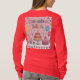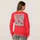 This is a pretty red and pink women's holiday t-shirt. This t-shirt features a whimsical birthday illustration with a pink background showing a cute October 14th text at the top in pastel colors. The main focus is a three-tiered birthday cake with yellow and pink layers, decorated with pink drip frosting and small candies. The cake sits on a mint green cake stand. Around the cake are various pastries: pink and yellow cupcakes with cherry toppings, a chocolate cupcake and a pink ice cream cone. Cute balloons in yellow, mint green, light blue and pink float in the scene. Colorful streamers and confetti are in the background. A garland of triangular flags in blue, green and pink runs along the top of the image. The bottom of the image features a row of cupcakes in pastel colors arranged in a repeating pattern. The illustration has a soft, cartoon-like style with rounded edges and simple shapes. Small black sparkles decorate the pink background. The t-shirt is a red women's long sleeve t-shirt. The t-shirt has unisex sizing and runs true to size. The t-shirt is made of 100% cotton.