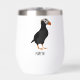 Un mignon Puffin en poitrine debout illustré de la vue latérale. La tête de ce joli oiseau se tourne pour montrer son marquage de bec. Le macareux crêpé est aussi connu sous le nom de macareux touffé en raison des plumes longues sur la tête.