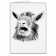 Carte de vœux drôle avec un dessin de chèvre qui hurle, parfaite pour toutes les occasions et une excellente occasion de répandre un peu d'amusement et de rire avec la famille et les amis. Carte de vœux d'art animalier simple en noir et blanc représentant ces animaux hilarants avec leurs expressions humoristiques. La plupart des gens ne choisissent pas la vie de chèvre, c'est la vie de chèvre qui les choisit. Voici une occasion de répandre un peu de vie de chèvre avec cette illustration originale de l'artiste Catherine Sweetman.