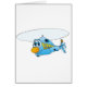 Un hélicoptère de dessin animé bleu qui vole dans le ciel amical.