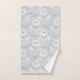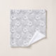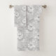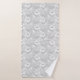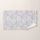 Belle serviette de bain avec des fleurs blanches dessinées sur un arrière - plan gris clair.