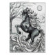 Une licorne noire saute dans le clair de lune, astucieusement imprimé d'un dessin au crayon noir et blanc original par S.Lynnette
