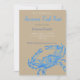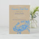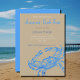 Elégante invitation à la plage pour une fête d'été de crabe.Il présente une illustration vintage d'un crabe bleu avec les détails de votre fête dans différentes nuances de bleu et gris. Le titre est fourni en polices de style calligraphie. Carte de style côtier avec kaki (#C3B091) avant solide bleu inverse. Conception par Alma Wad.