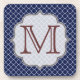 Marine Bleu Quartier en treillis Quart Monogramme d'huile Premier Motif personnalisé Dessous de verre de boisson