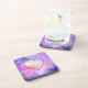 A dreamy set of personalized wedding coasters with a nice combination of soft pastels and bright colors. A colorful abstract painting with a cosmic space image in pink, purple and yellow watercolors. The colors blend and mix together creating luminous ethereal clouds with little twinkling stars peppered throughout.