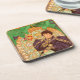 Dessous de verre de l’affiche lithographique Lorenzaccio (1896) d’Alphonse Mucha. Le Lorenzaccio éponyme de la pièce, dans lequel les stars Sarah Bernhardt, est habillé de violet et de noir, tenant un livre. Un dragon vert le surplombe. Un grand cadeau pour les amateurs d'art Art Nouveau et tchèque.