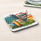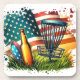 Illustration d'un panier de golf à disques, d'une bouteille de bière et d'un drapeau américain.