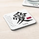 Comportant une image du caractère chinois pour l'amour, cet ensemble de liège 6 arrière, les dessous de verre en plastique à haute brillance a une citation sincère par Kahlil Gibran et un rectangle rouge qui contient les caractères chinois pour la paix et l'amour. Dessous de verre de papier d'assortiment See, serviette de tissu et serviette de papier. Voyez la collection entière de dessous de verre d'éclaircissement dans la section de dessous de verre de FOOD/BEV |.