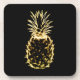Un contour doré griffé d'un ananas brille contre un arrière - plan noir.