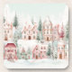 Une aquarelle rose et menthe Décor hivernal avec des maisons douillettes, des arbres de Noël et de la neige!