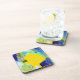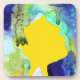 Œuvre d'art originale abstraite colorée représentant la silhouette d'une dame avec des motifs aquarelles colorés en bleu et or.