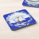 Joli dessous de verre bleu royal avec un cerf aquarelle, des arbres, un oiseau et une couronne. Merci à Creative Fabrica pour certains des éléments du design.