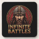 Un design audacieux et dynamique avec le texte "Batailles infinies" dans une palette de couleurs viking traditionnelles, rouge et or. Les mots sont disposés dans un style puissant et angulaire, rappelant les runes anciennes. L'arrière - plan est une surface texturée et patinée, ajoutant un sens d'authenticité et une signification historique.