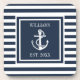 Un design nautique avec une ancre, des rayures bleu marine et blanches élégantes et personnalisées avec votre nom de famille ou de bateau et date établie. Conçu par Thisisnotme©