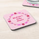 Cet ensemble impressionnant de dessous de verre en liège présente une image art numérique d'un groupe de fleurs et de papillons, chacun d'une nuance rose pour représenter une petite fille. Les fleurs comprennent Dahlias, nénuphars, ne m'oubliez pas et Chrysanthemums. Les fleurs et les papillons sont disposés en cercle et il y a du texte personnalisé dans le cercle pour que vous puissiez le personnaliser comme vous voulez, ce design parfait pour révéler le sexe du bébé, pour un Baby shower ou pour célébrer un nouveau-né fille.