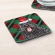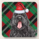 Dessous de verre amusant pour la personne qui aime son chien russe Terrier noir. Celui-ci porte un chapeau de Père Noël pour une approche élégante de la saison des Fêtes, et se tient debout contre un arrière - plan festif rouge et vert plaid pour décorer votre maison ou bureau avec la joie saisonnière amoureux des animaux de compagnie.