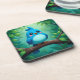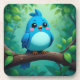 Illustration adorable d'un joyeux oiseau bleu perché sur une branche dans une forêt luxuriante.