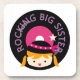 Blond Rocking Big Sister T-shirts, sacs fourre-tout, boutons, magnets, porte - clés, coussins, cartes, autocollants, et beaucoup d'autres articles de grande soeur mettant en vedette une fille blonde dans un casquette crânien et la conception d'album avec le texte "Rocking Big Sister"!