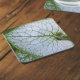 Protégez votre table contre les traces d'eau et les taches grâce à cet ensemble de 6 capuchons brillants avec l'image d'une feuille de plante Brunnera macrophyllum en forme de coeur, vert et blanc. Un joli design floral !
