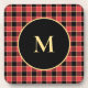 Ce dessous de verre monogrammé est agrémenté d'une version modifiée d'un motif classique de chèques-buffles en rouge et noir avec un accent de ligne jaune. Ce design a été créé avec une image SVG dans laquelle tous les éléments disposent de couleurs qui peuvent être customisées par l'acheteur à n'importe quelle teinte pour coordonner avec leur décor.