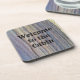 Bienvenue aux clients ou même vous-même à la cabine avec ce dessous de verre à grains de bois. La motif en bois rustique présente des tons terre de noir et marron en rayures verticales. "Bienvenue au Cabine" est centré dans la police occidentale et peut être facilement customisé pour répondre à vos besoins. Ces dessous de verre sont une touche agréable pour les locations de vacances cabines et rendre votre séjour des invités encore plus mémorable.