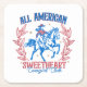 Ce design patriotique branché présente une ligne d'art rétro vintage Americana dessinée par une cowgirl à cheval avec le dicton "All American Sweetheart Cowgirl Club".
